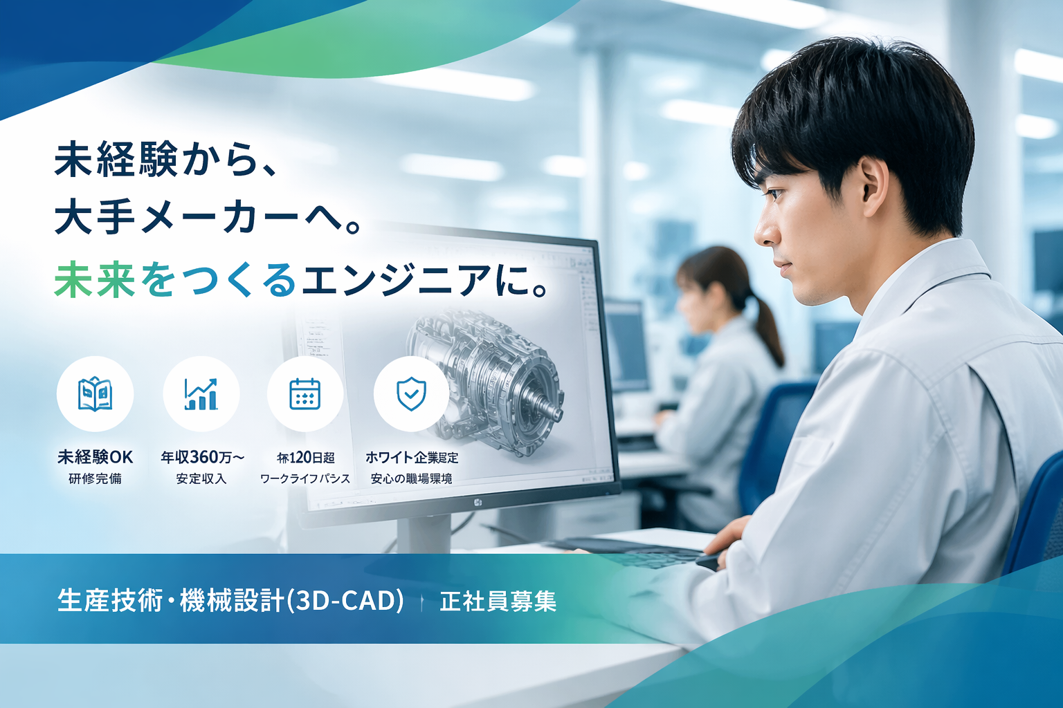 文系・理系は一切問いません。現在活躍中の先輩も、元販売職や営業など「CADって何?」という状態から、今では大手メーカーの最前線でエンジニアとして活躍しています。
